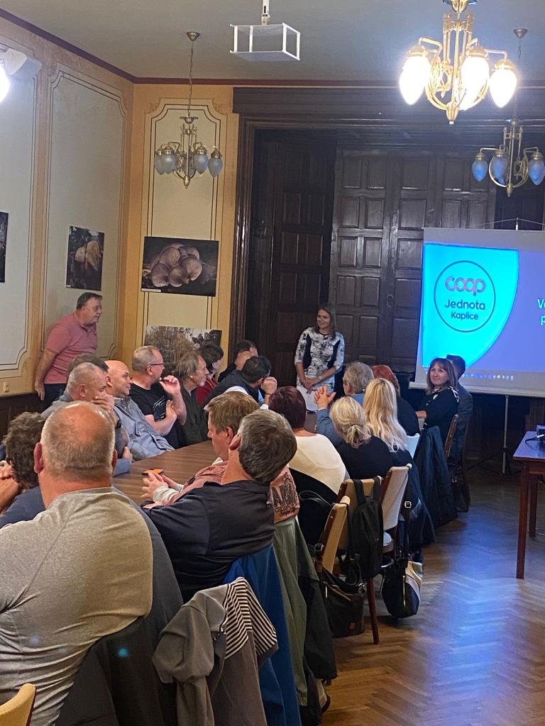 Jedním z hlavních bodů jednání byla prezentace Ing. Hoffmanna z Jendoty Kaplice, který starostům nabídl možnost spolupráce v oblasti zavedení provozu 24/7 ve venkovských prodejnách. Od 1.1.2026 ukončuje Jednota provoz několika prodejen v našem území. Tato problematika je tedy pro starosty obcí nyní velmi aktuální.